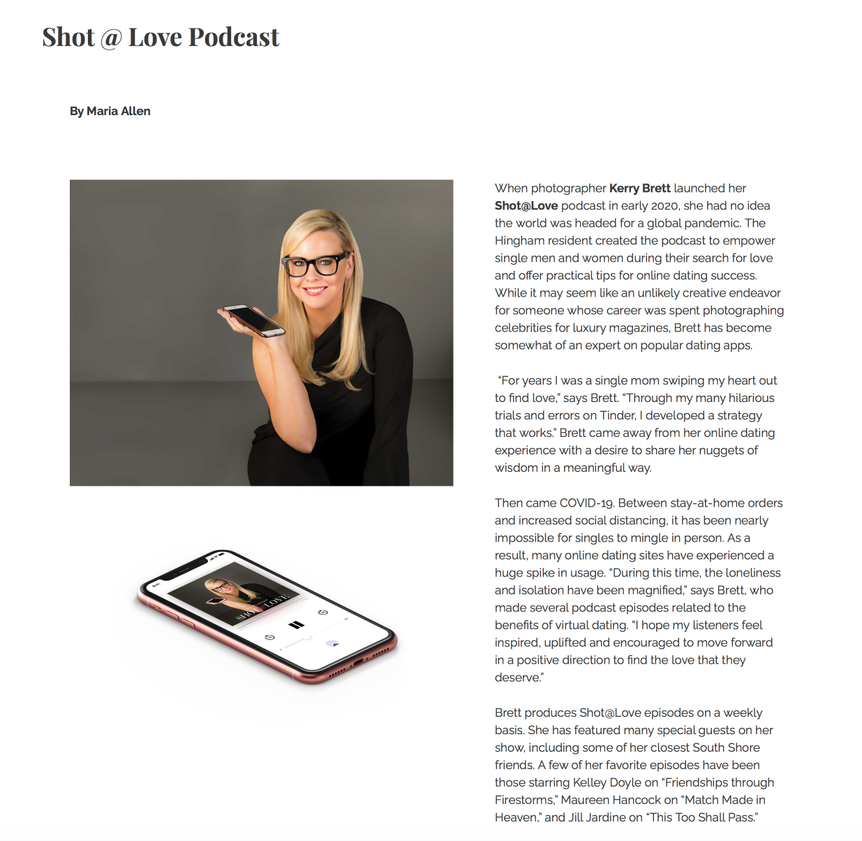 Kerry Brett, a Boston-based celebrity photographer, is the host of Shot@Love, the first motivational podcast dedicated to helping others find love. With deep empathy for singles navigating online dating, Kerry understands the art and psychology behind crafting a successful profile—starting with the perfect photograph. Recognizing that your online profile is your "personal brand," Kerry launched The Swiping Soiree in 2019, a live seminar designed to empower women to transform their lives through dating.